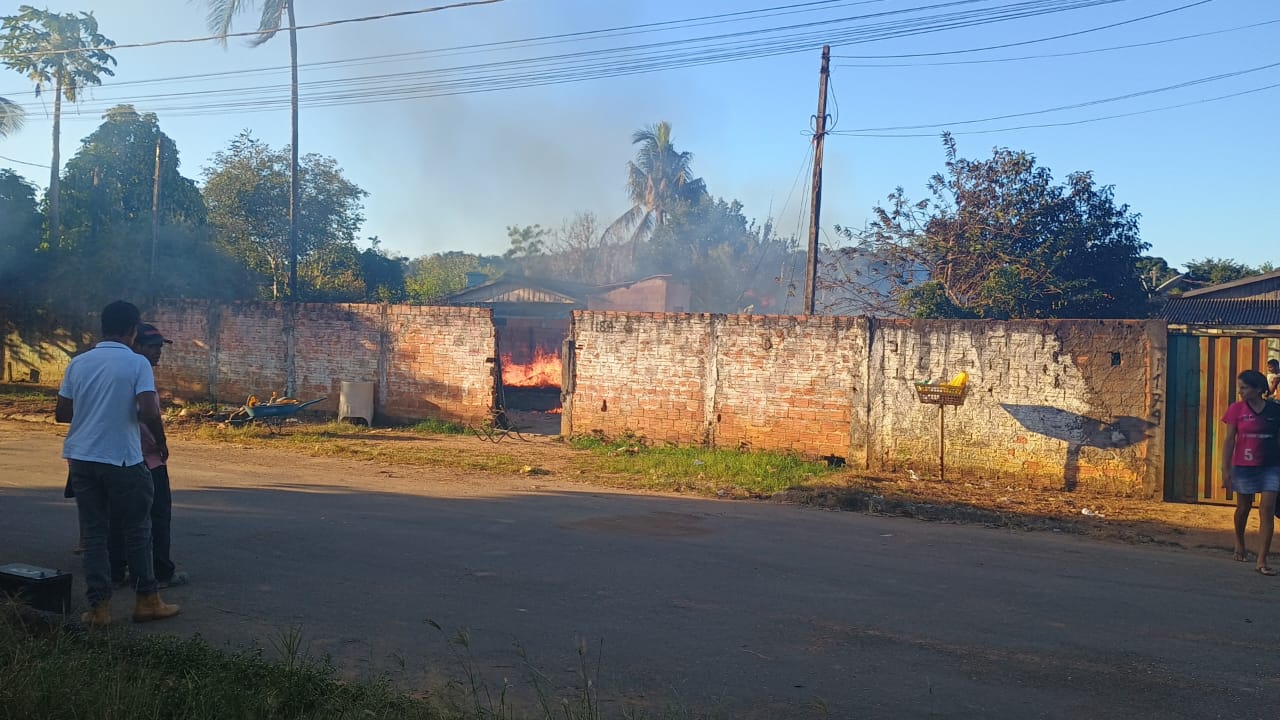 No final da tarde desta terça-feira (20), um incêndio de grandes proporções destruiu completamente uma residência de madeira localizada na Rua Sibipiruna, na cidade de Governador Jorge Teixeira.